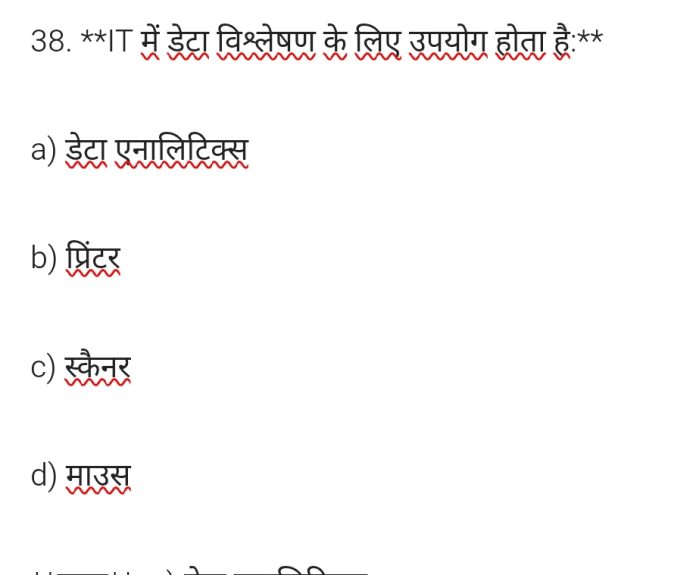 38. **IT में डेटा विश्लेषण के लिए उपयोग होता है:**